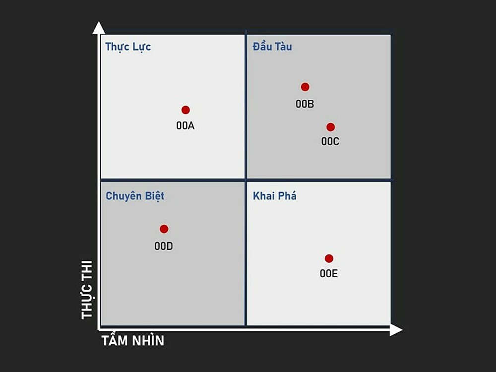 Cách Vinasa phân loại các doanh nghiệp công nghệ số dựa trên khả năng thực thi và tầm nhìn. Ảnh chụp màn hình
